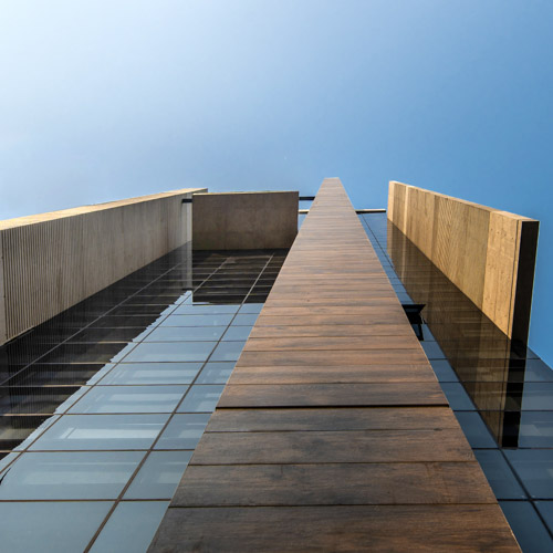 The 10-storied commercial headquarters for Dahmashi Group at Banani reinterprets the idea of a corporate facade by shifting from conventional structural expression to a composition defined by planes, depth, and shadow. Instead of exposing structure in a literal sense, the design frames the curtain wall with extruded fair-face concrete walls, their proportion and disposition carefully considered to generate a sculptural rhythm across the elevation. Fenestration is treated not as voids but as spatial impressions, where the subtle interplay of recesses, strips, and shadow lines produces a facade that is both minimal and monumental. A restrained material palette—curtain glass, exposed concrete, and metal louvers—ensures clarity while emphasizing texture and proportion. On the north and south walls, grooves and louvers add layered detail, balancing the building’s overall austerity. Three extended vertical walls assert its monumentality within the dense commercial fabric of Banani, while a projecting verandah slab punctuates the composition with a singular horizontal gesture. The result is a commercial building that functions as much as a workplace as it does a sculptural presence in the city, embodying a form-based minimalism where light, shadow, and materiality elevate the everyday office block into an architectural statement.