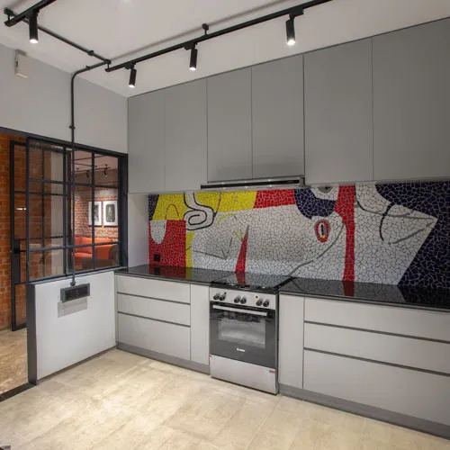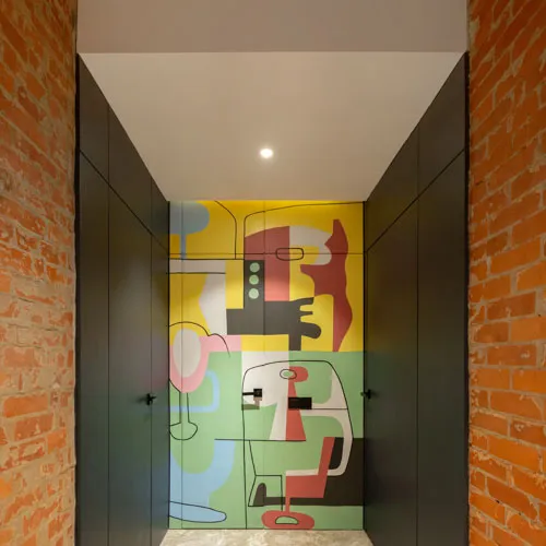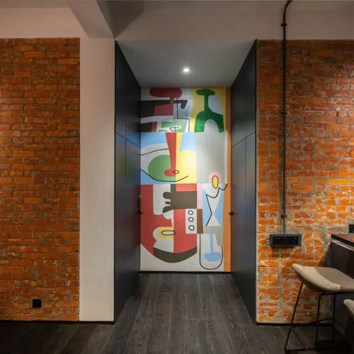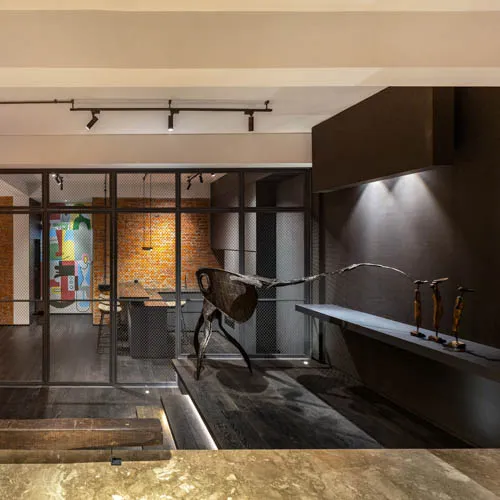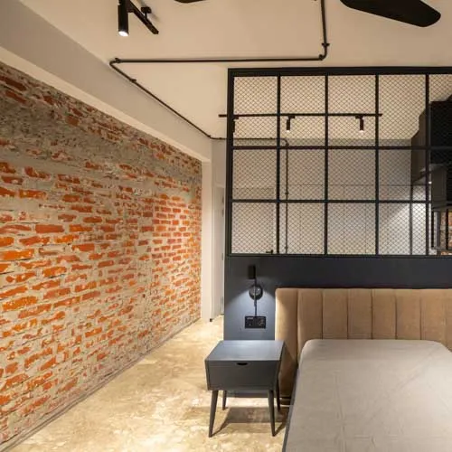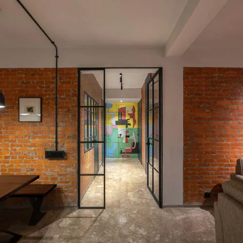 This old apartment in Dhanmondi, rich with memories, underwent a significant transformation through an experimental redesign of its entire space. The design embraces a modern rustic aesthetic, highlighting the raw beauty of exposed brick walls enhanced by a rough metallic finish and natural, earthy tones. This combination creates a harmonious dialogue between the old and the new, celebrating the apartment’s history while introducing contemporary elements. Vibrant artworks and carefully chosen accent colors inject life and character into the rooms, enriching the overall theme of rugged elegance. The interplay between barren surfaces and bold colors produces a dynamic yet balanced environment.